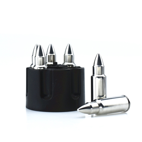 Cubitos de hielo de whisky de acero inoxidable con forma de bala, 6 uds.