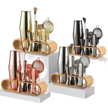 ชุดเชคเกอร์คอกเทลทำจากเหล็กสแตนเลสพร้อมขาตั้งไม้ไผ่ของขวัญสำหรับเดินทางจากโรงงาน